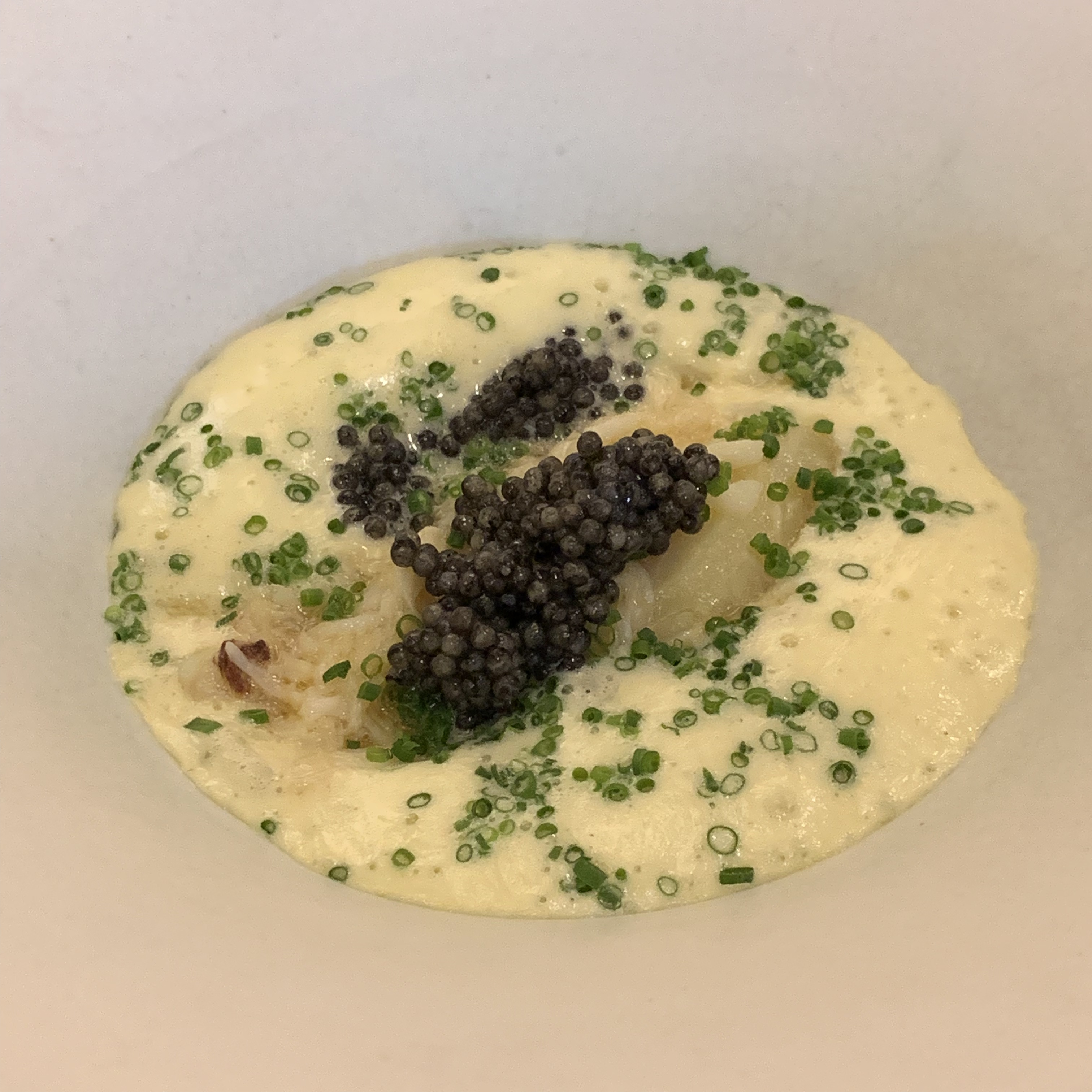 warm crab custard with champagne sabayon and chive