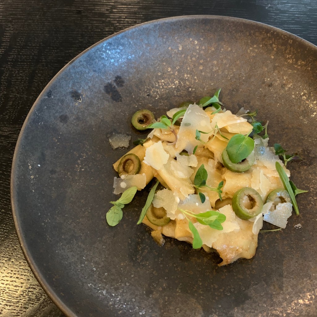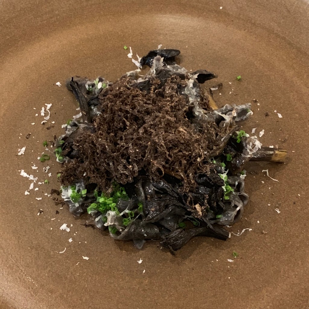 Course 4: Dollops of creamy chicken-liver mousse were accompanied by caramelized onion puree, pickled Yellowfoot mushrooms, and a pumpernickel “soil”. As additions, the course was served with a broth made from grilled chicken bones and a dinner roll. Chef Adkisson told me it was his mom’s family recipe reserved for special occasions. So, it was perfect for a Kanō pop-up dinner.
