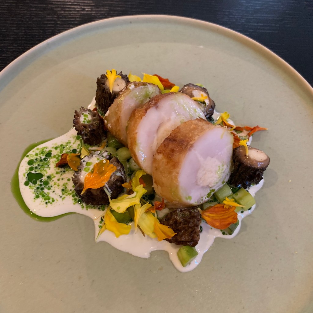Course 3: This course also included morels stuffed with foie gras and a sauce of grilled chicken cream.