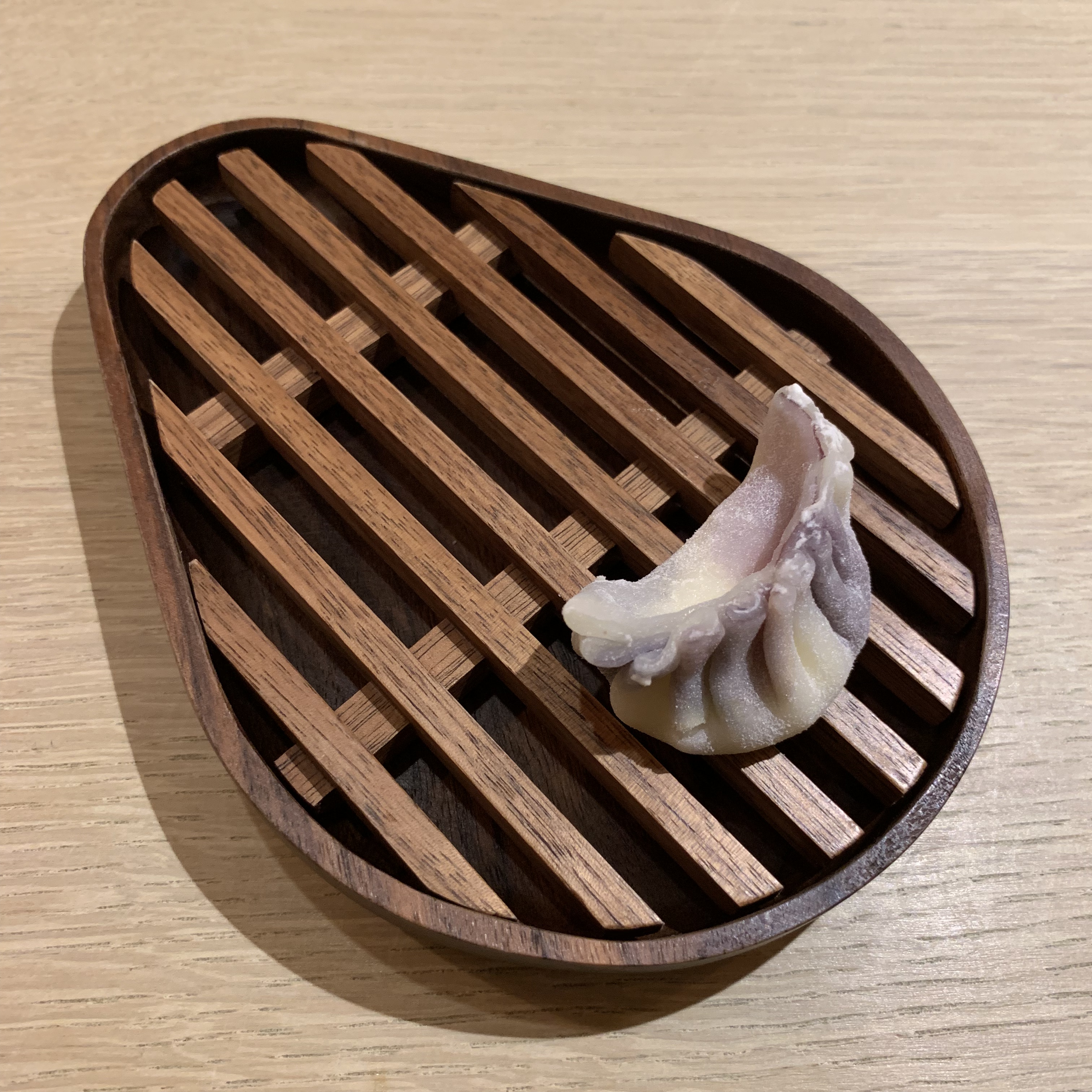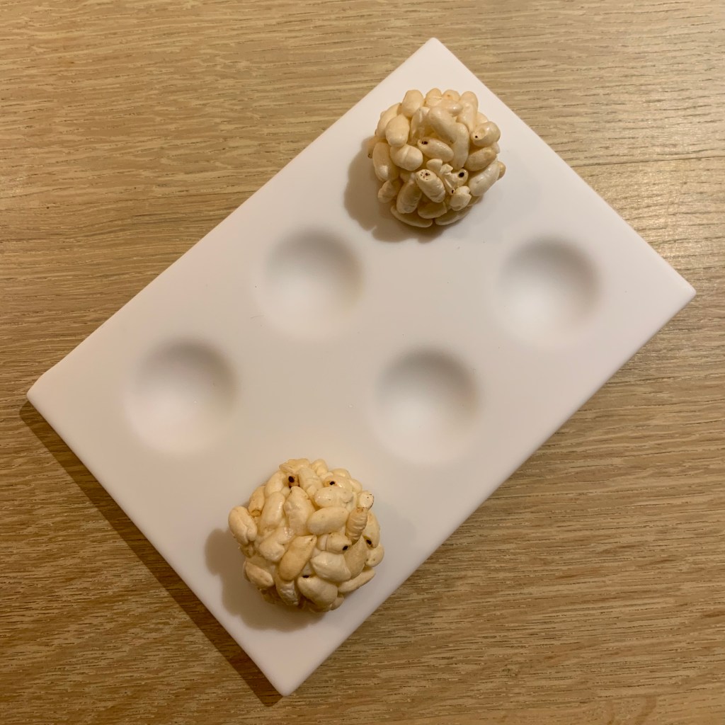 Course 24: This was a dumpling with the flavor of rice pudding. A traditionally savory dish prevalent in many Asian cuisines was reinterpreted successfully as a cold, sweet dessert.