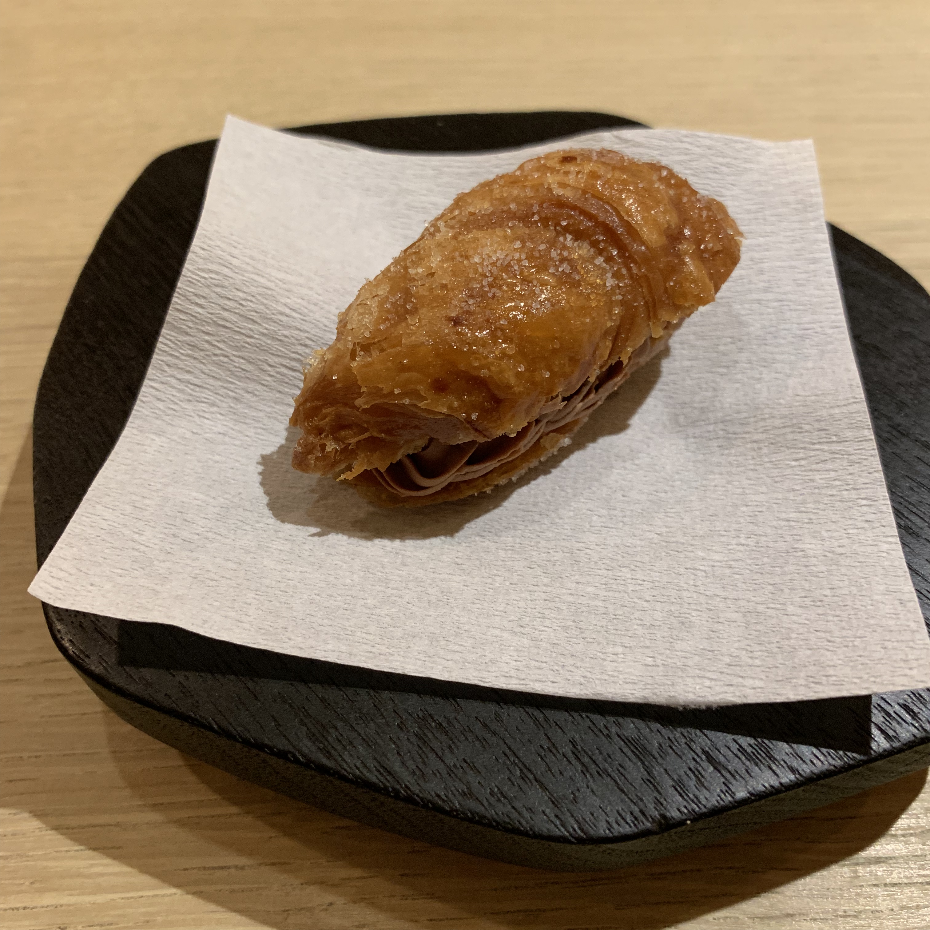Course 25: This final bite was a fried puff pastry that contained dark chocolate ganache and toffee caramel. The flaky exterior gave way to lovely sweet flavors.