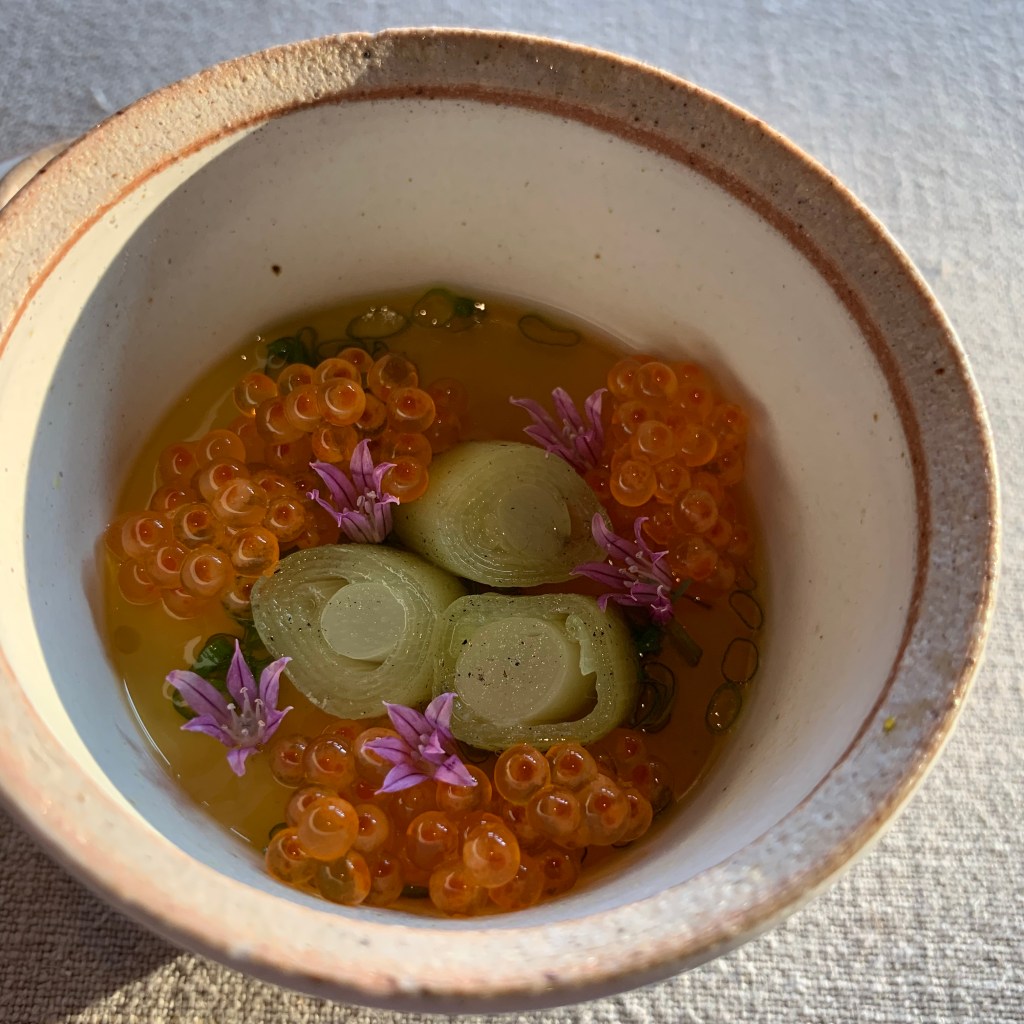 Course 5: The ethereally soft custard counterbalanced the toothy leeks, with briny notes from the roe tempered by the citrusy yuzu. A nicely constructed course where flavors uplifted each other.
