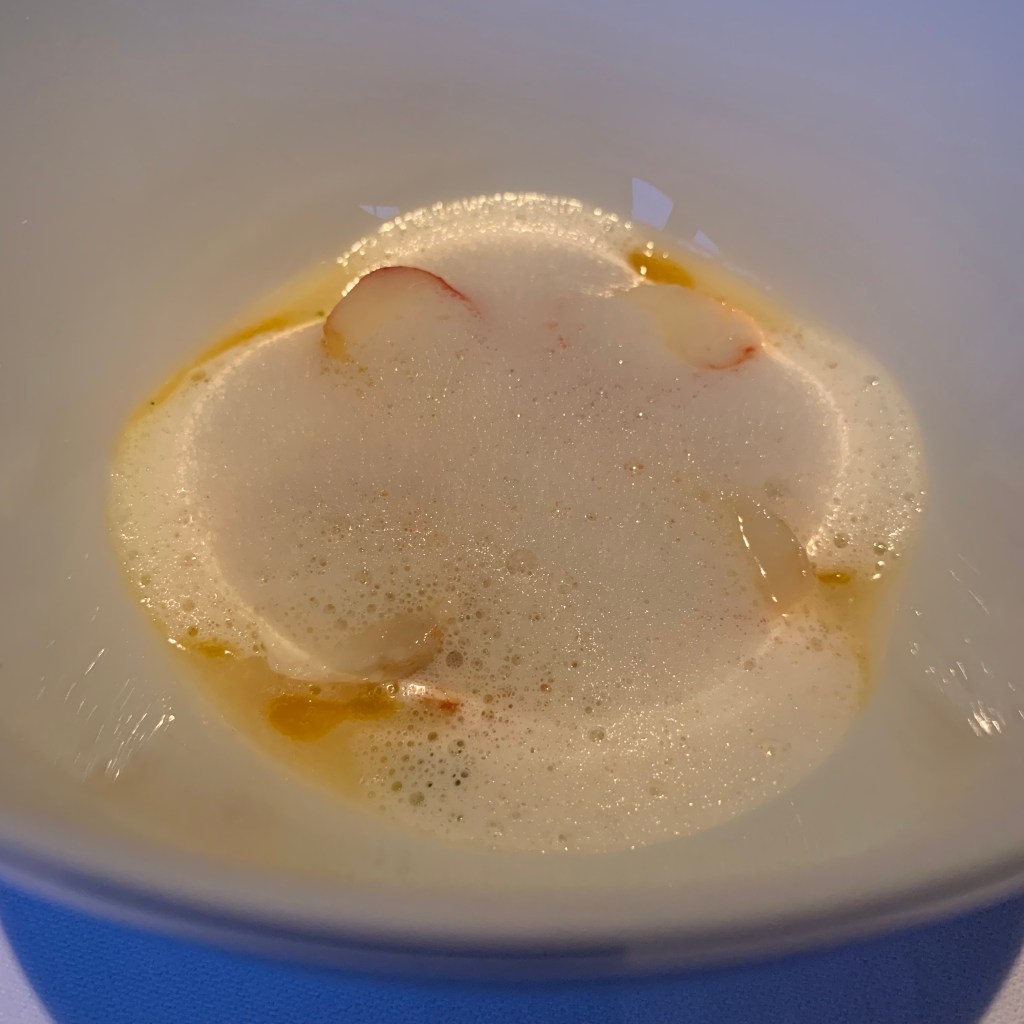 For the second amuse-bouche, the Kumamoto oyster’s sweet, tasty flesh was imbued with the briny, though not overwhelming, note of its watery environment. I detected an aftertaste somewhat reminiscent of a fresh melon upon swallowing.