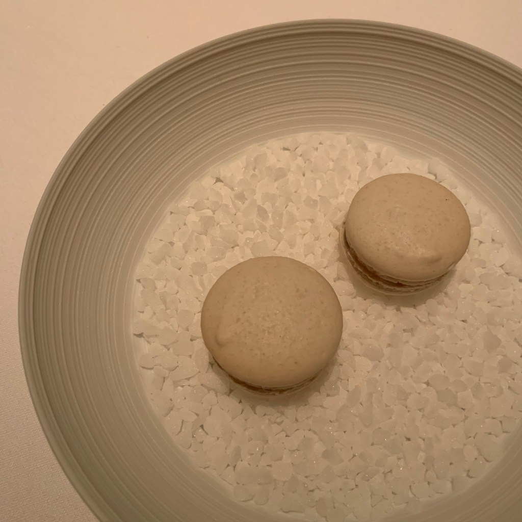 Gourmandises: Petit fours to finish. Toasted coconut macarons, strawberry pâte de fruit, and chocolate-mint tarts. Simply put, these were spectacular sweet bites to end a wonderful meal. I loved them all!
