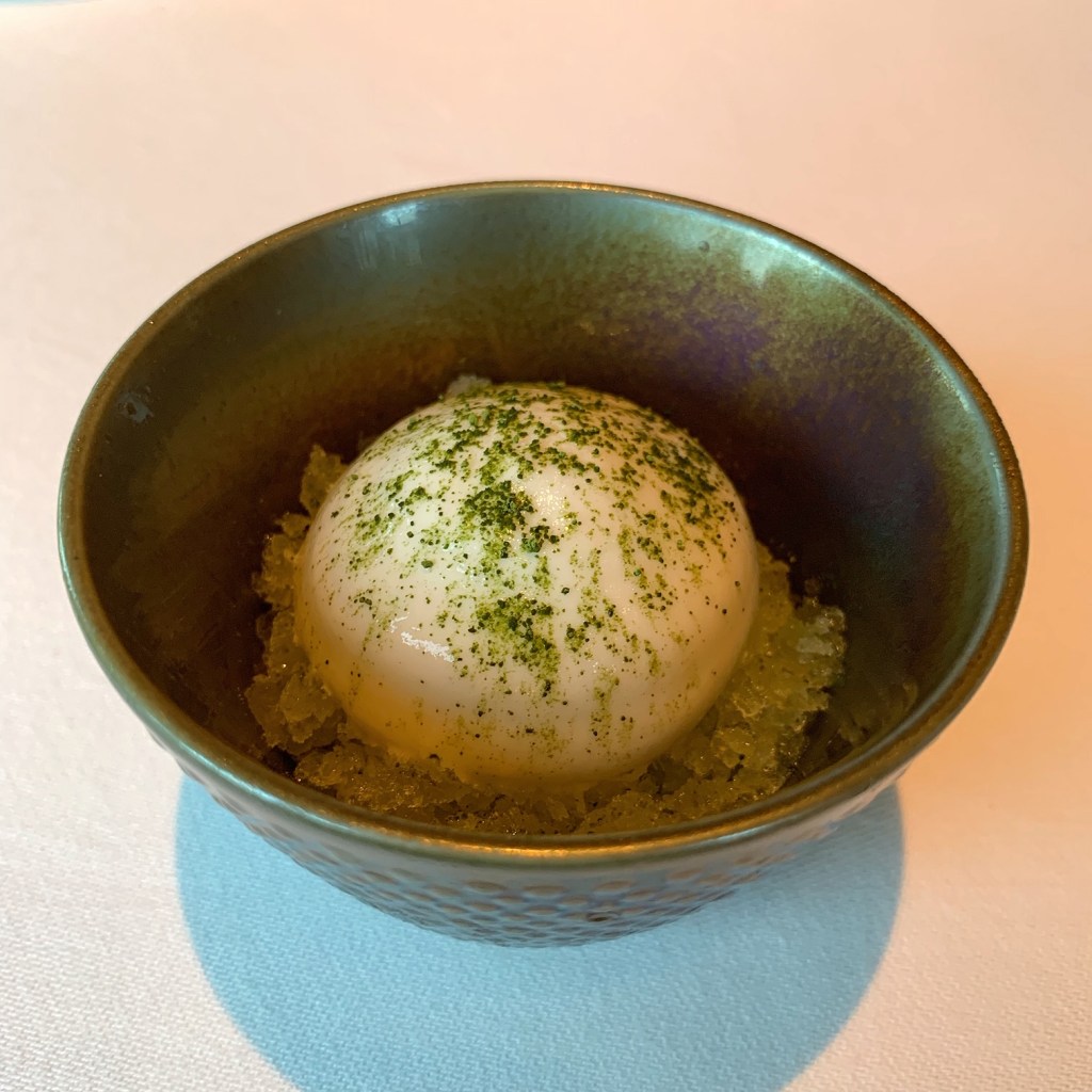 yuzu & cucumber granité, yogurt fouetté, green tea