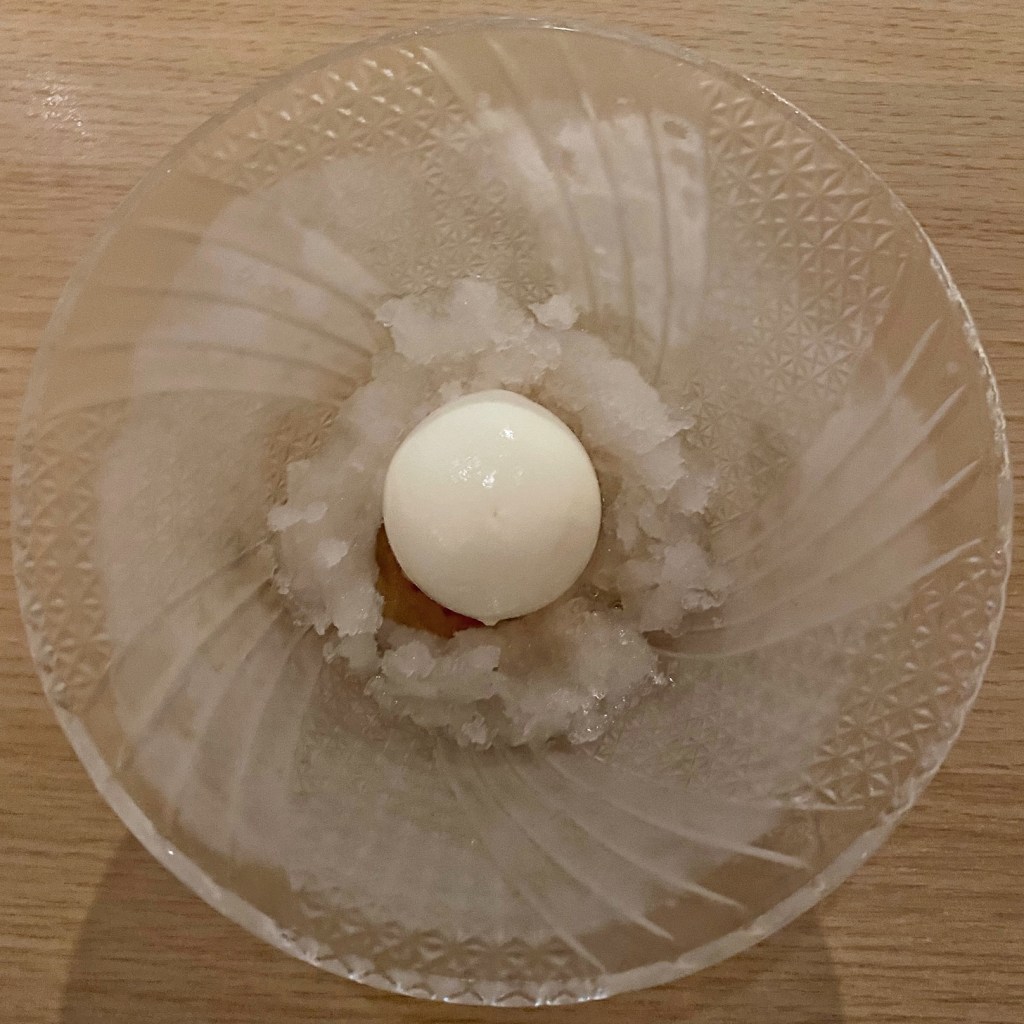 Course 9: A new variation on a dessert I ate last year when it was served with sorrel. Still a wonderful treat! Very cold and refreshing.