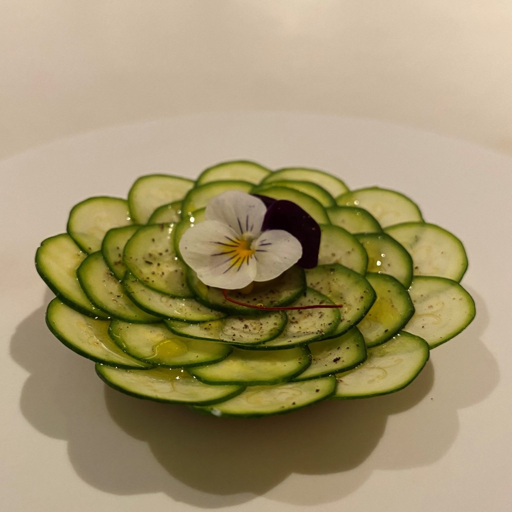 In the waning days of summer, the September tasting menu began with a small rye tart, a one-bite course consisting of multiple concentric layers of courgette. The manicured slices of zucchini were neatly arranged in a pattern reminiscent of the skillful presentation one might see in Michelin-star establishments. Upon first glance, the tart resembled a miniature art piece. Any misguided notions I once harbored, the presumptuous belief that such a dull and bland-looking vegetable could never be tasty, evaporated the moment I bit down. The subtle but delicious flavor of the fresh courgette bloomed and enveloped my tastebuds after a slight, satisfying crunch.
