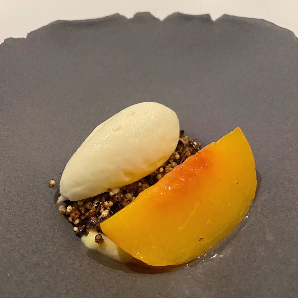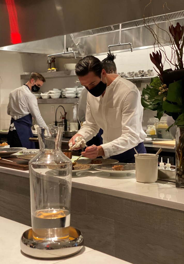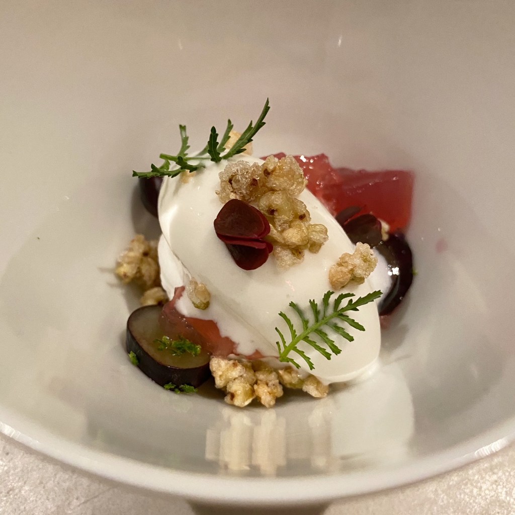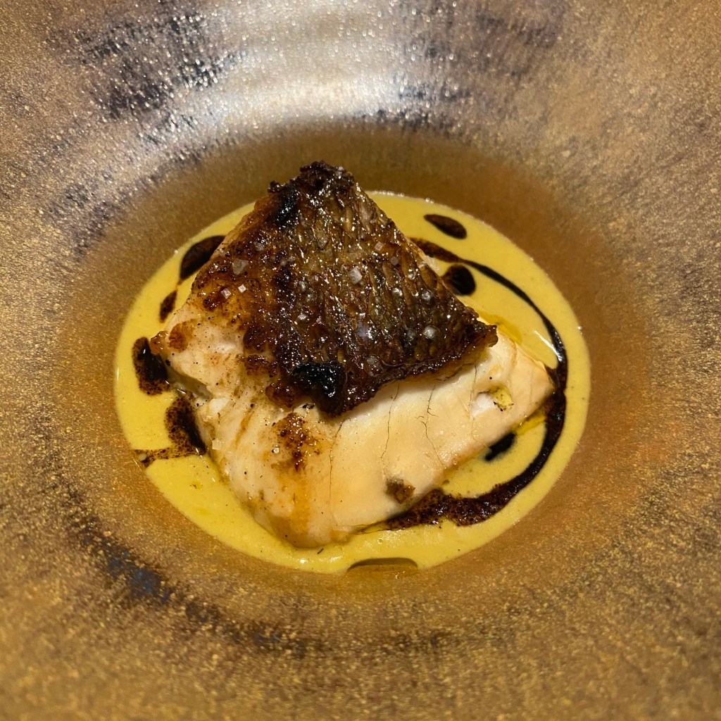 Jônt’s competency with sauces was further demonstrated in a course containing a perfectly cooked piece of Madai snapper with crispy skin. The delicate fish sat in a puddle of a lovely yellow curry, carrying the flavors of vadouvan spices commingled with aromatic notes of galangal. Kosho, a condiment of chile, salt, and yuzu citrus added a welcome punch of heat and acid. It was one of the most incredible dishes of that evening.